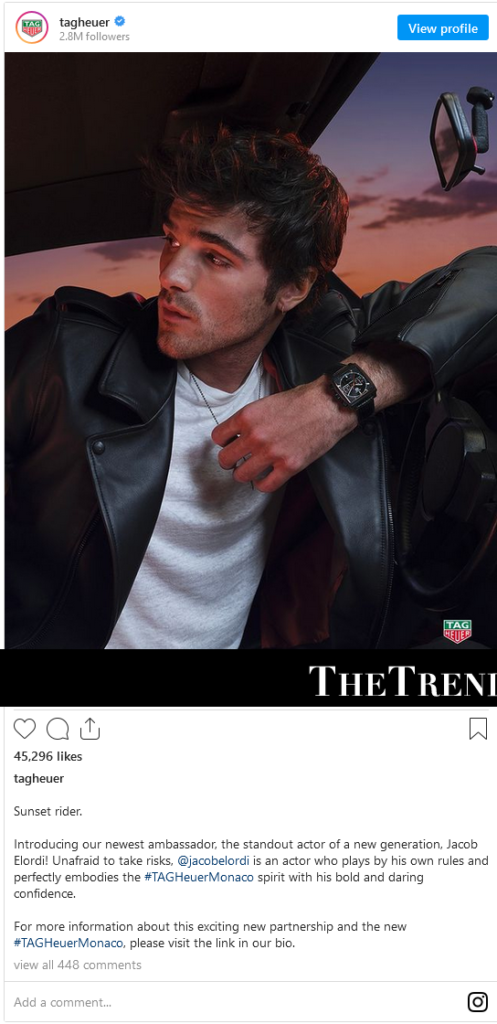 Euphoria star, Jacob Elordi, is the new face of TAG Hauer. The Australian actor will represent the Swiss watch brand and square-shaped Monaco watch. The brand will launch a limited edition of the watch at the Monaco Grand Prix, with an event taking place in its honor. “I’ve always been drawn to things that are both classic and timeless,” said Elordi. “…so partnering with TAG Heuer was perfect for me.”