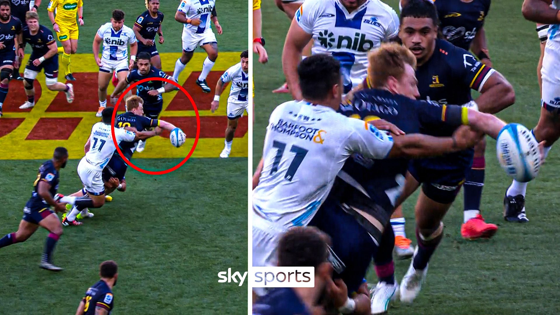Ex-Wales international Rhys Patchell caused a stir in the commentary box with this brilliant offload in the Highlanders’ Super Rugby match with the Blues.